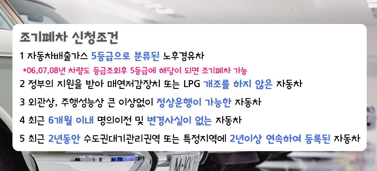 그렇다면 조기폐차를 하기위한 조건은 어떻게 될까요??