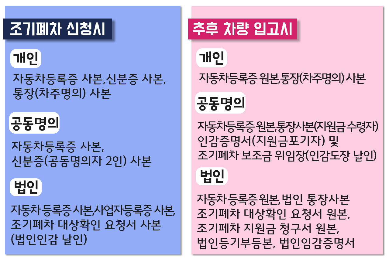 조기폐차에 해당이 되신다면 준비하셔야 하는 서류들이 있습니다