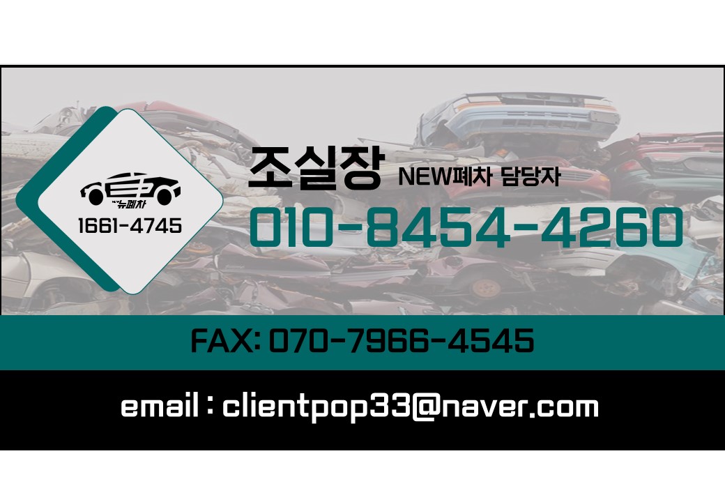 궁금하신 부분이 있으시다면 언제든 뉴폐차 폐차장으로 연락 바랍니다 : )