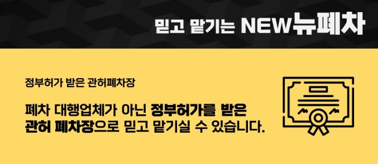 뉴폐차 폐차장은 정부에서 관허폐차장으로 허가를 받았기 때문에 차주분들은 걱정없이