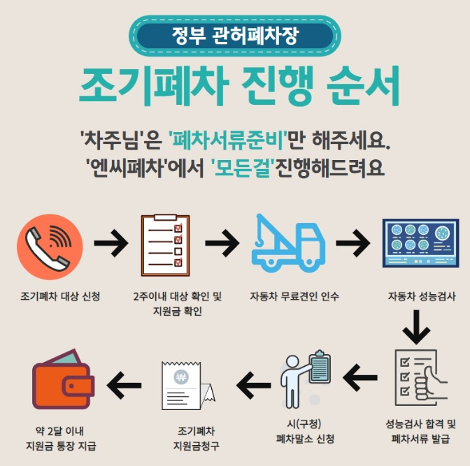 접수 방법은 차량 소유자 분들께서 한국자동차 환경협회 직접 접수하는 방식과 폐차장을 통하여 대행으로 접수를 받으실 수 있으며