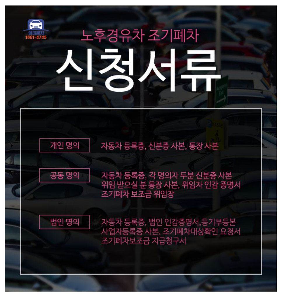 포스팅 내용을 간략하게 읽어보시면 조기폐차에 필요한 정보들을 확인하실 수 있습니다:)