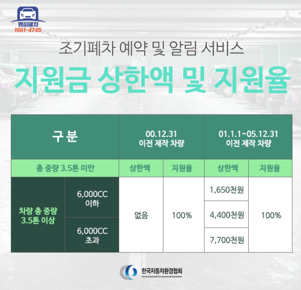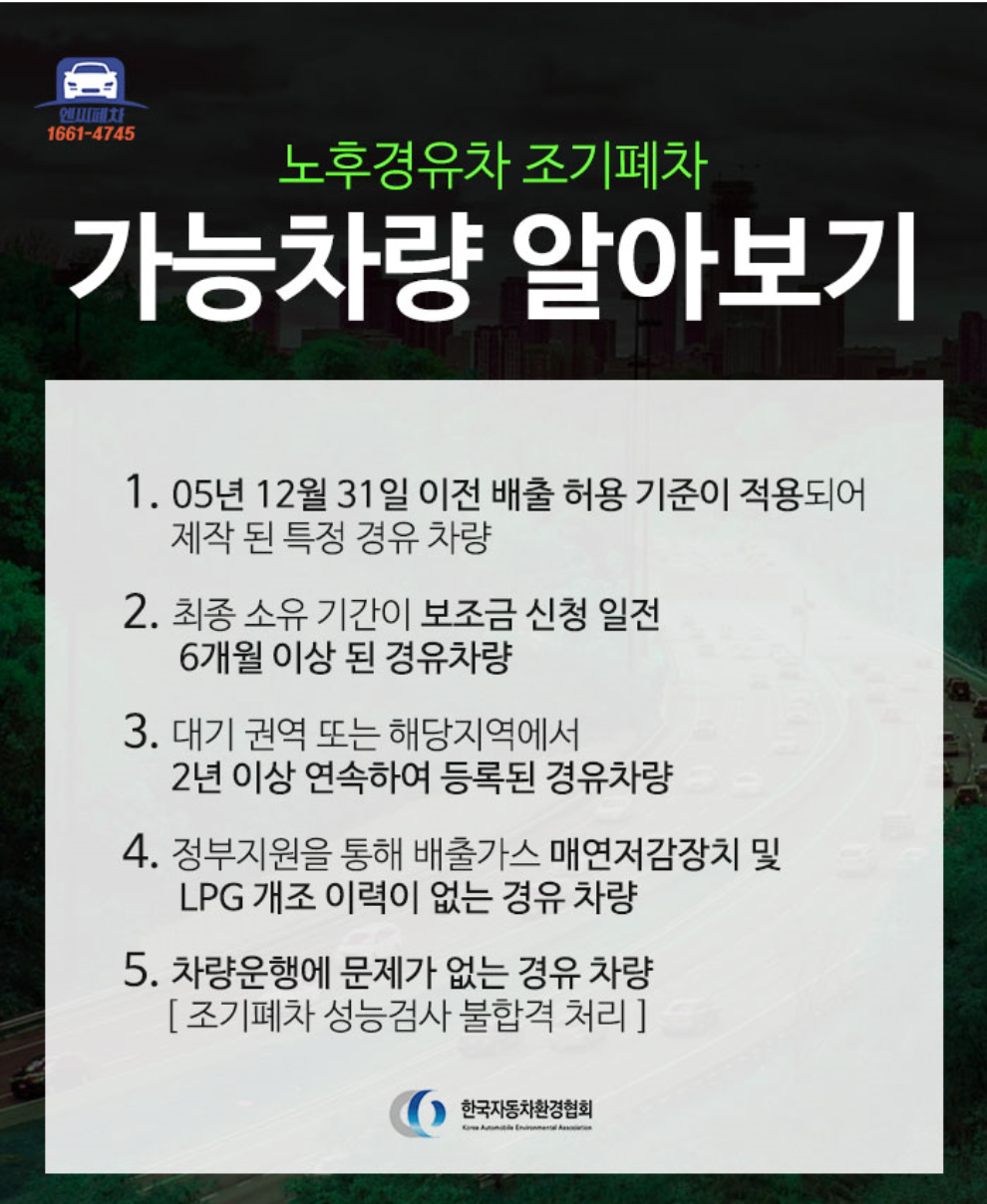 차주님들께서는 조기폐차 접수 진행에 앞서서 먼저 위의 조건들을 확인하실 수